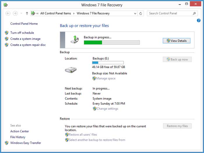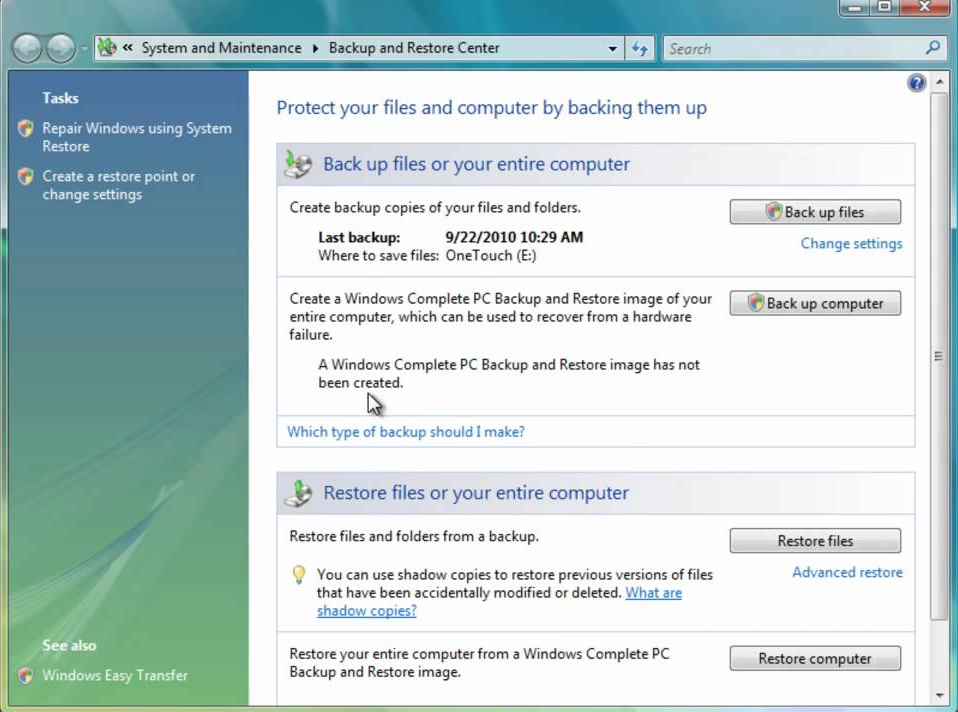 🔹 Backup and Restore (Windows Vista e 7)